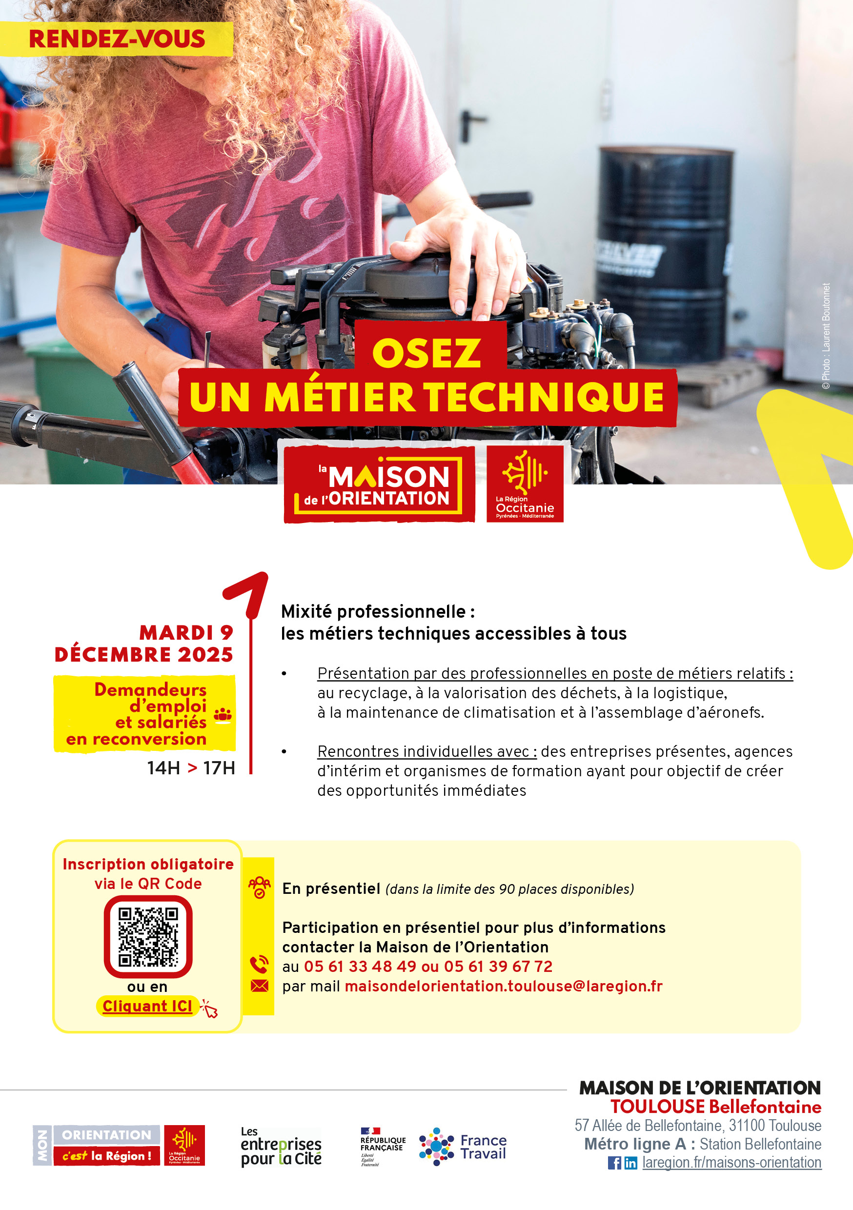 Sur inscription https://www.laregion.fr/MDOTLSE-osez-metier-technique-dec-2025