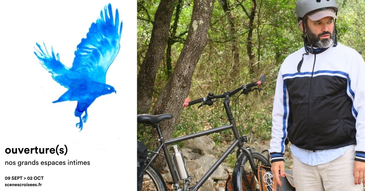 Il y a (M) le personnage et (Michaël) l’acteur. Ne font-ils qu’un ? L’un circule vraiment en vélo pour se rendre sur les lieux de représentation. L’autre tente réellement de se désintoxiquer. Les deux semblent se débattre avec leurs contradictions et chercher une issue à rebours de la « stabilité dynamique » de nos sociétés modernes. L’être humain est-il condamné à l’idée du progrès et de son corollaire indiscutable « la croissance » ?