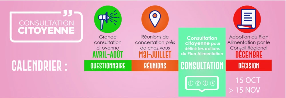 - Enfin, vous pouvez compléter un bulletin inséré dans Le Journal de ma Région et le retourner (sans affranchir) dans une enveloppe à l’adresse : Région Occitanie Consultation Citoyenne Plan alimentation LIBRE REPONSE 28072 31089 Toulouse Cedex 9