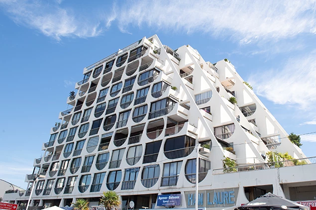 Station balnéaire de la Grande Motte, dont la construction à débutée lors de la « mission Racine », avec pour Architecte Jean Balladur.