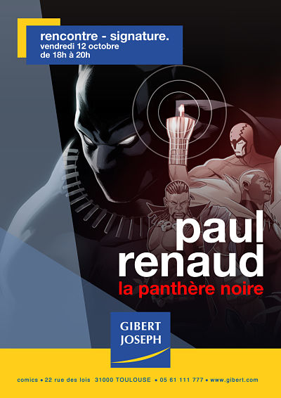 Nous avons le très grand plaisir de vous annoncer la venue de Paul Renaud, notre Toulousain dessinateur chez Marvel Comics, pour un double événement autour de la parution en France, le 10 octobre chez Panini, de "La Panthère Noire", album qu’il a entièrement illustré.