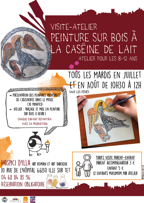 l’activité artistique : Découverte de la technique médiévale de la peinture à la caséine de lait,Traçage et mise en peinture sur bois d’un motif issu des peintures murales de Casesnoves (1 heure)
