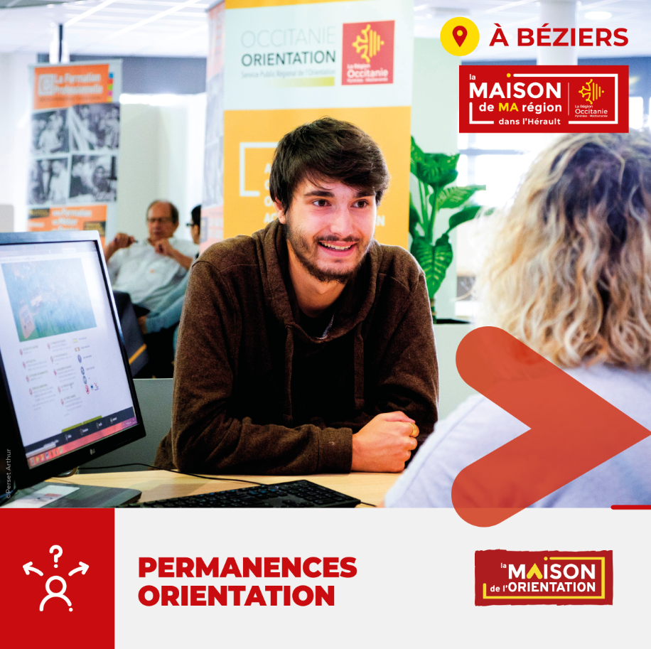 Vous souhaitez vous orienter ? Faire un Bilan personnel avec un conseiller en formation ? Venez rencontrer les agents de la Maison de l’Orientation de Montpellier les mercredi 6 mai et 3 juin 2026 de 9h30 à 12h et de 13h30 à 16h30 à la Maison de Ma Région à Béziers. C’est gratuit, sur RDV à maisonregion.herault@laregion.fr !