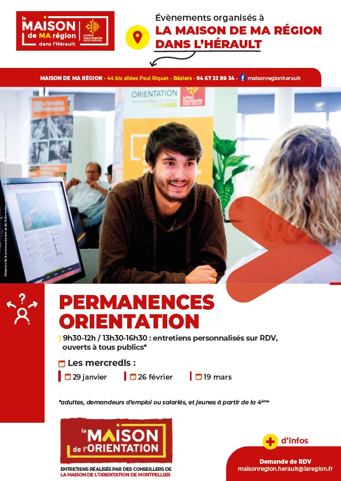 Permanence Orientation à Ma Maison de Ma région Hérault à Béziers