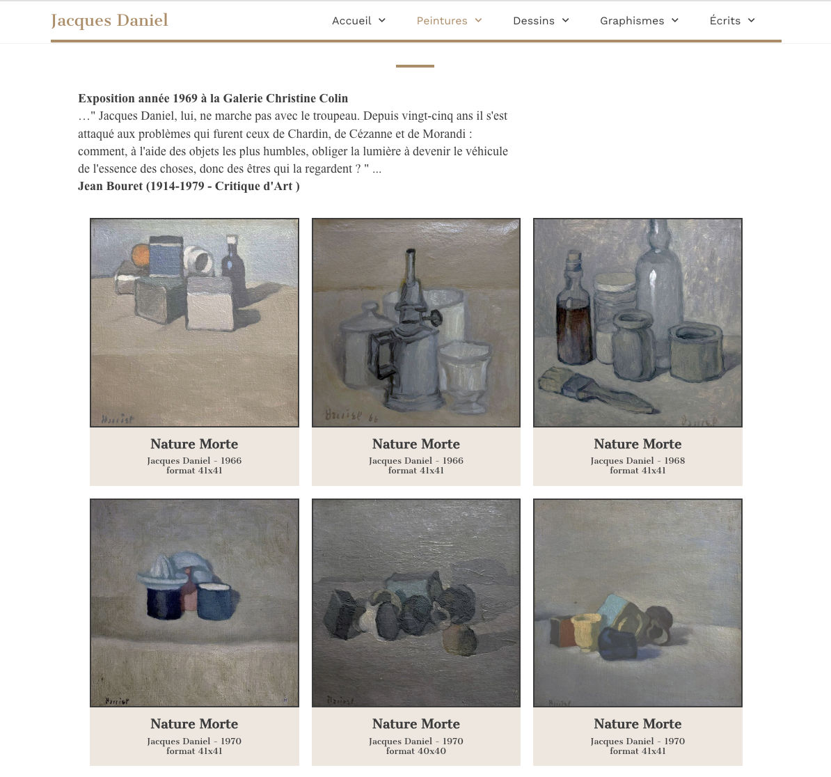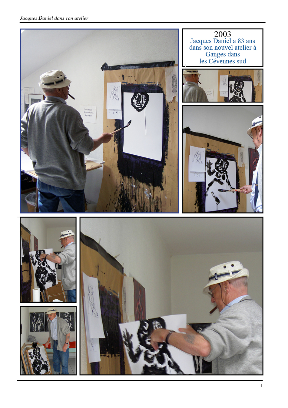 Dans mon atelier, il y a une impressionnante collection de plus de 600 peintures, des centaines de dessins, des illustrations originales faites pour des éditeurs, des articles de presses, des affiches de ses expositions, la mise en page de centaines de livres (voir liens, https://clubcollecte.fr/?maquettiste%5B%5D=Jacques%20Daniel&action=ccfilter).