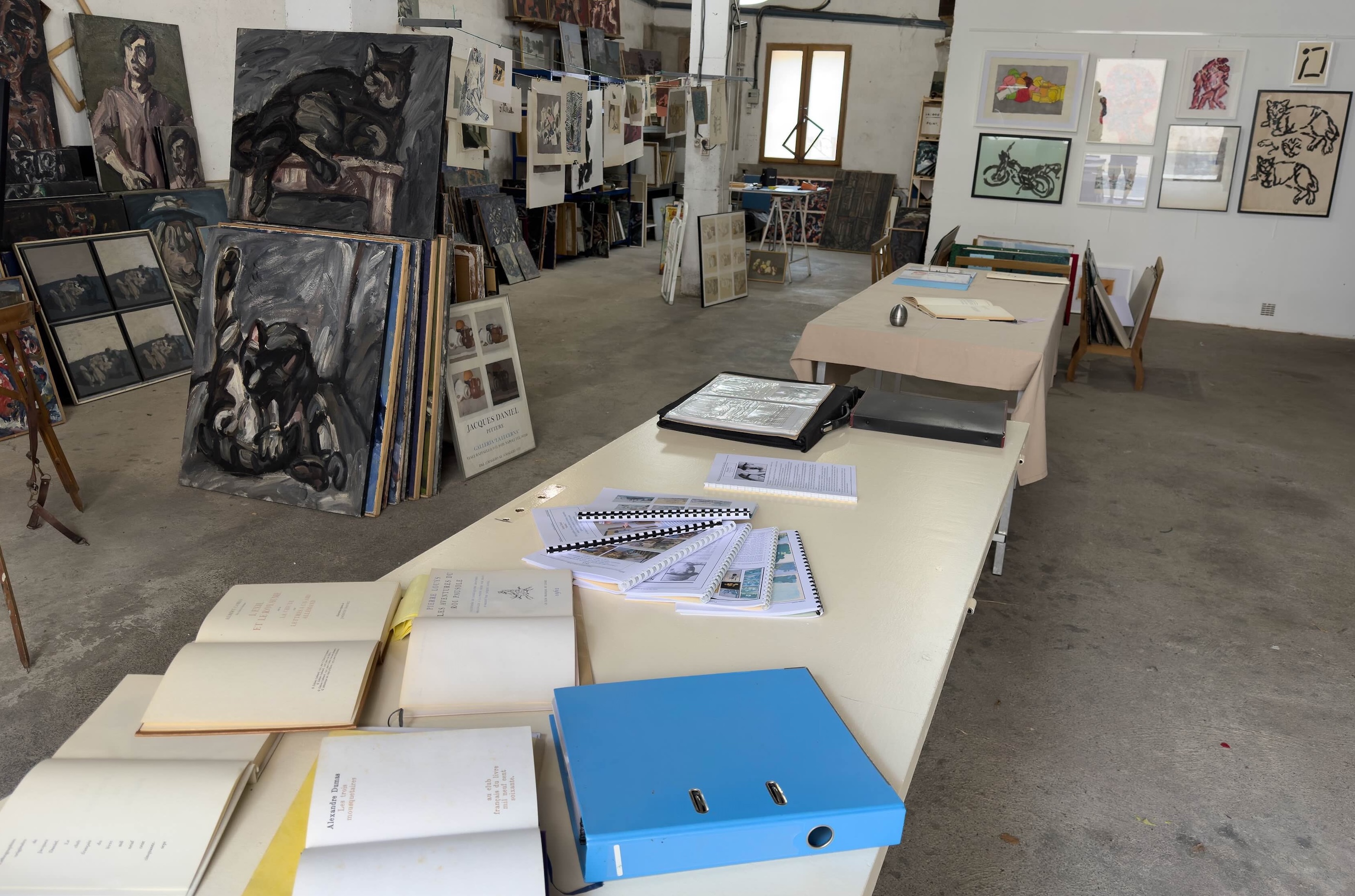 Dans mon atelier, je travaille à ordonner, photographier, archiver les peintures, dessins, livres, écrits et archives pour constituer des dossiers afin de ne pas laisser disparaître dans l’oubli ce précieux patrimoine.