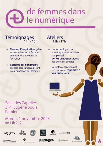Alors ne manquez pas l’événement "+ de femmes dans le numérique" qui se tiendra le mardi 21 novembre à la Salle des Capelles à Pamiers !