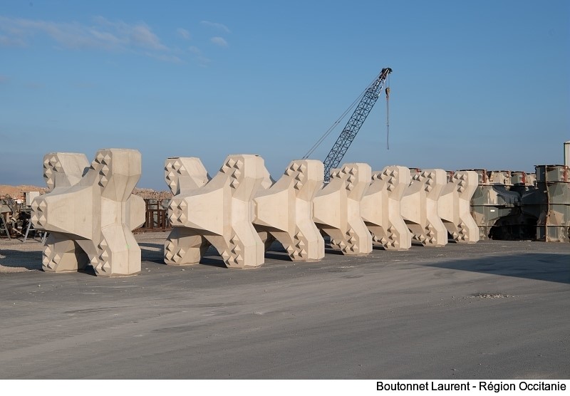 Le port de Port-La Nouvelle, propriété de la Région, s’impose comme une figure de proue de la transition énergétique et de la politique Repos (Région à énergie positive) portée par Carole Delga. « L’ambition est de positionner Port-La Nouvelle comme un hub de la logistique pour l’éolien en mer flottant », souligne la présidente de Région. Pour ce faire, depuis 2019, la Région réalise avec succès la première phase de l’extension du port : création du nouveau bassin et de digues (2,5 km de digue nord et extension de 600 m de la digue sud), et construction d’un quai de 250 mètres. Un investissement de 234 millions d’euros. Les quais et installations réalisés pour cette filière contribueront aussi à l’attractivité du port pour le traitement des flux lourds.