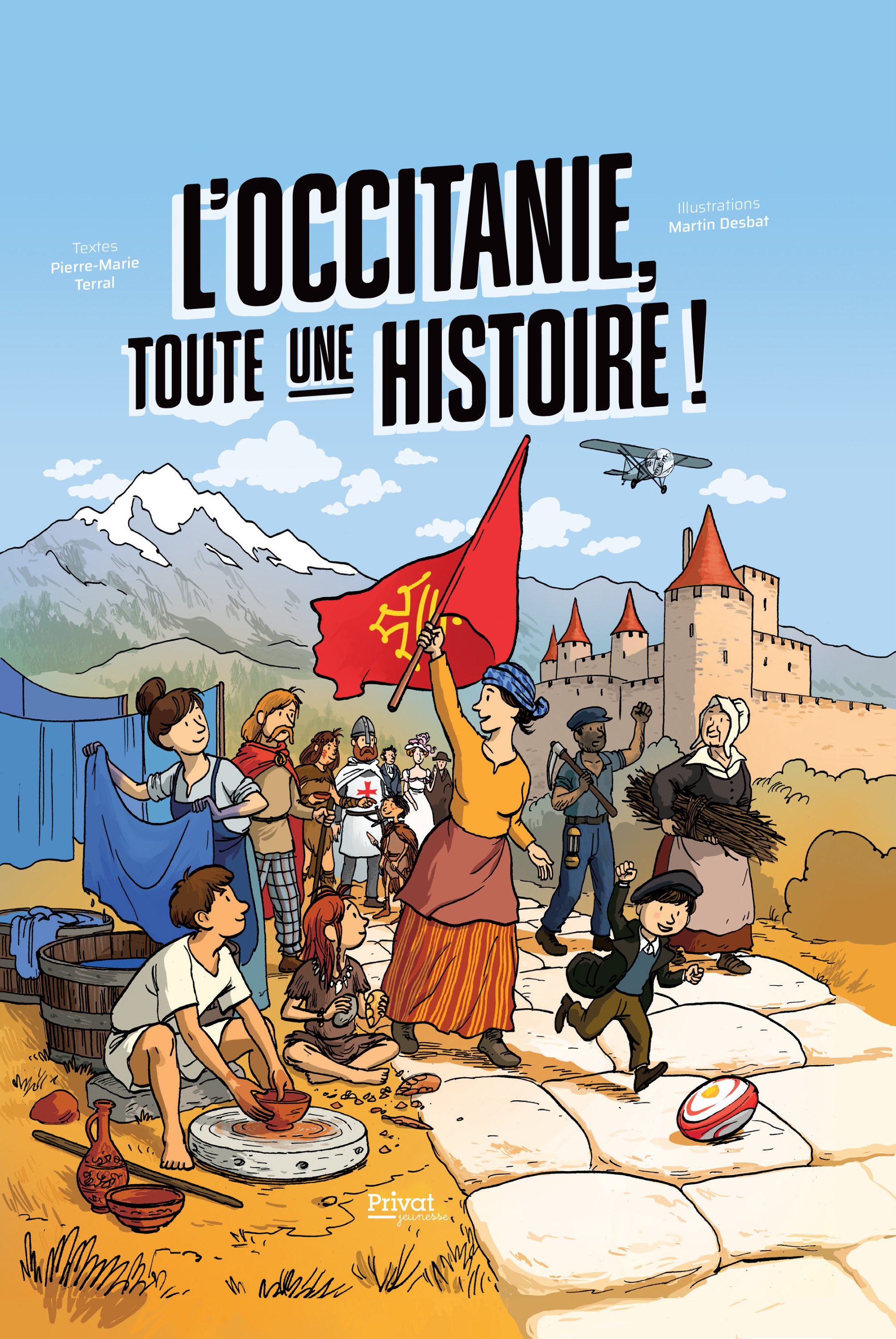 Destiné aux enfants, « L’Occitanie, toute une histoire ! » de Pierre-Marie Terral (textes) [1] et Martin Desbat (illustrations) [2] offre un voyage dans le temps aux jeunes lecteurs, et leur permet de suivre les traces de nos ancêtres. De la grotte de Niaux (Ariège) aux bâtisseurs du pont du Gard, en passant par la bête du Gévaudan (Lozère) ou les pionniers de l’Aéropostale à Toulouse, ils pourront remonter le fil de l’Occitanie à travers les grands événements et les lieux qui ont fait son histoire. Un fabuleux voyage dans le passé, qui traverse toutes les époques, publié par Les Editions Privat à Toulouse.