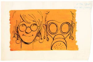 Crédits : Projet de couverture pour Le Grand Duduche en vacances, 1974. Texte et dessin Cabu : © V. Cabut