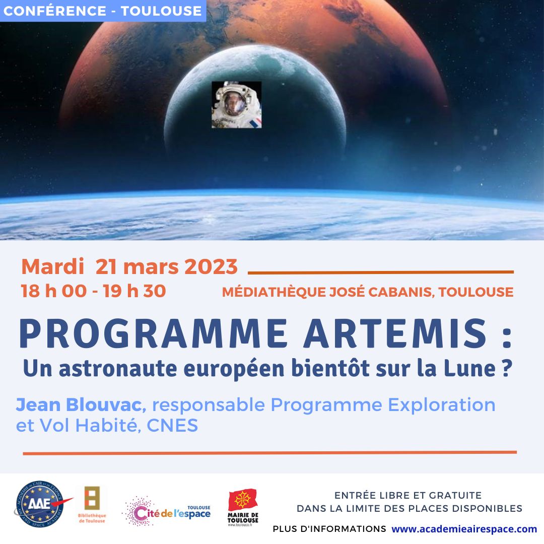 Conférence organisée par l’Académie de l’air et de l’espace en partenariat avec la Bibliothèque de Toulouse, la Mairie de Toulouse et la Cité de l’espace, Toulouse.