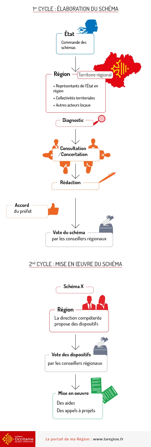 La loi NOTRe a permis de renforcer le rôle des régions. Les trois schémas suivants sont obligatoires et sont développés en lien les uns avec les autres.