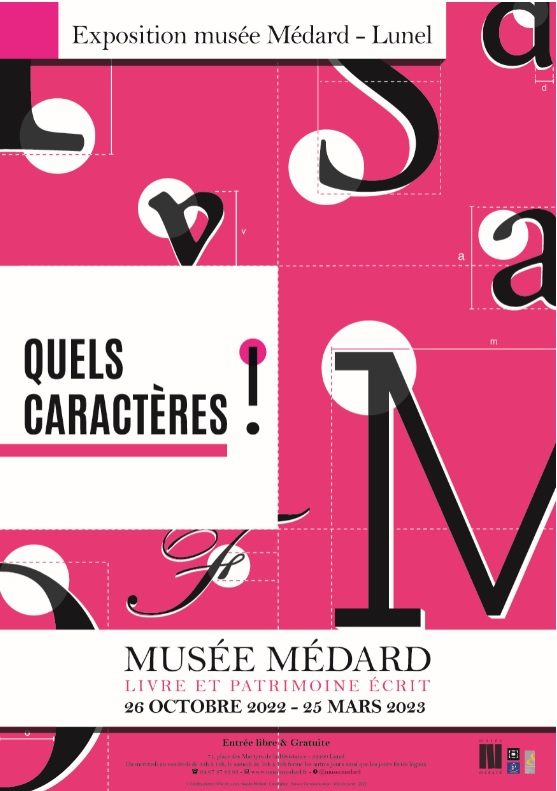 En effet, l’histoire du livre et du texte imprimé est intimement liée à la création comme à l’évolution esthétique des caractères. De la typographie en caractères mobiles en plomb, développée en Europe par Gutenberg au milieu du XVe siècle, aux procédés numériques contemporains, les lettres et leur forme font appel à la sensibilité du lecteur : lisibilité, force d’impact, beauté… Les collections du musée Médard permettent à ce propos d’explorer quelques jalons de cette histoire : l’inspiration de la calligraphie, le rôle des imprimeurs, les grands créateurs de caractères… La présentation d’ouvrages sera enrichie par les outils de fabrication (poinçons, matrices) et d’impression, grâce au partenariat avec l’Imprimerie nationale et aux Éditions Encre et lumière.