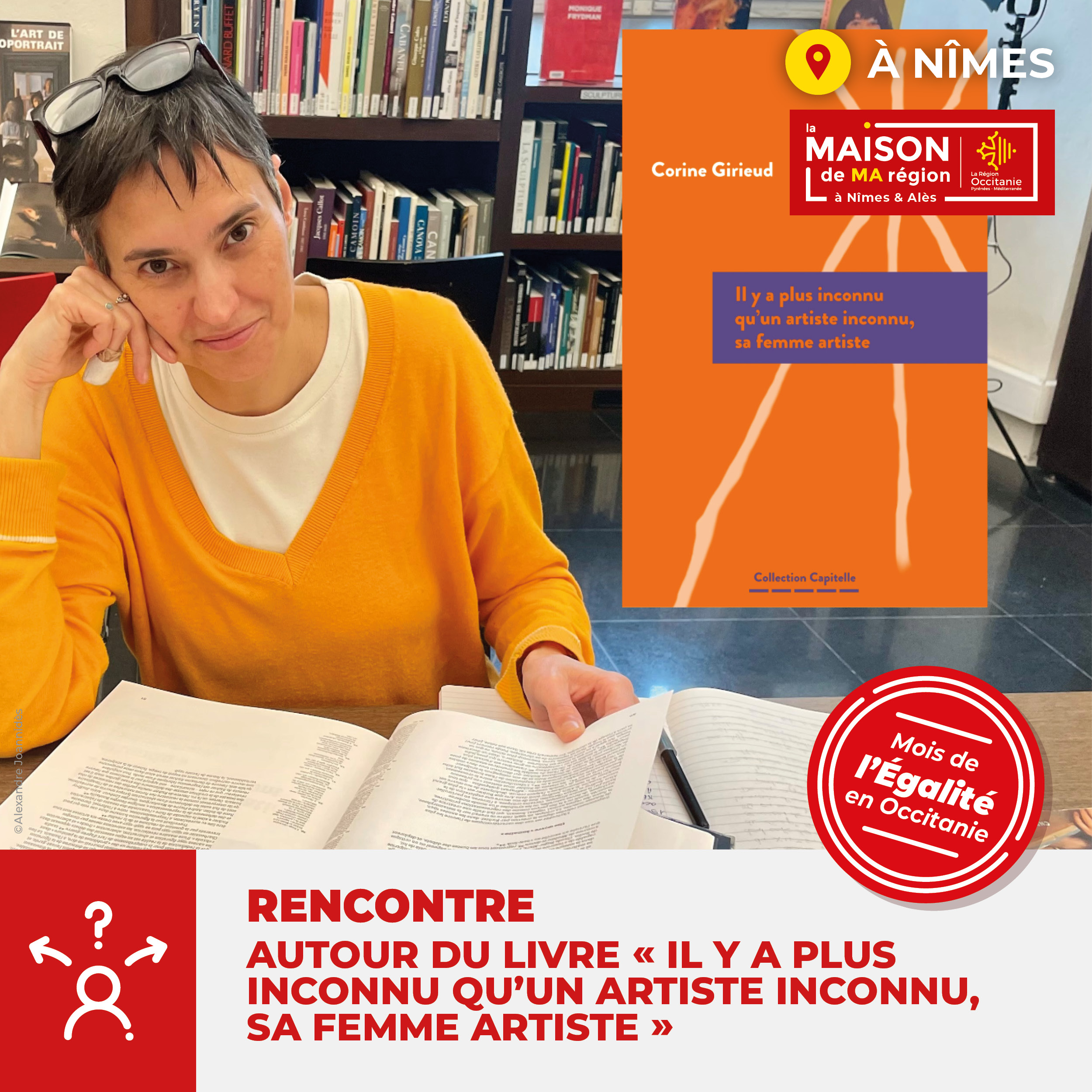 Dans le cadre du mois de l’égalité femme/homme en Occitanie, la Maison de Ma Région à Nîmes organise, le jeudi 19 mars 2026, une rencontre autour du livre « Il y a plus inconnu qu’un artiste inconnu, sa femme artiste » par Corine GIRIEUD, autrice.
