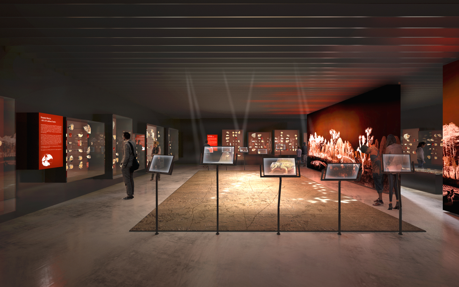 - « Traces du vivant » : 700 m² en immersion dans l’Histoire de la Terre depuis 540 millions d’années. Après avoir traversé la vertigineuse "salle du temps", découvrez les animaux et plantes disparus qui ont peuplé notre territoire.
