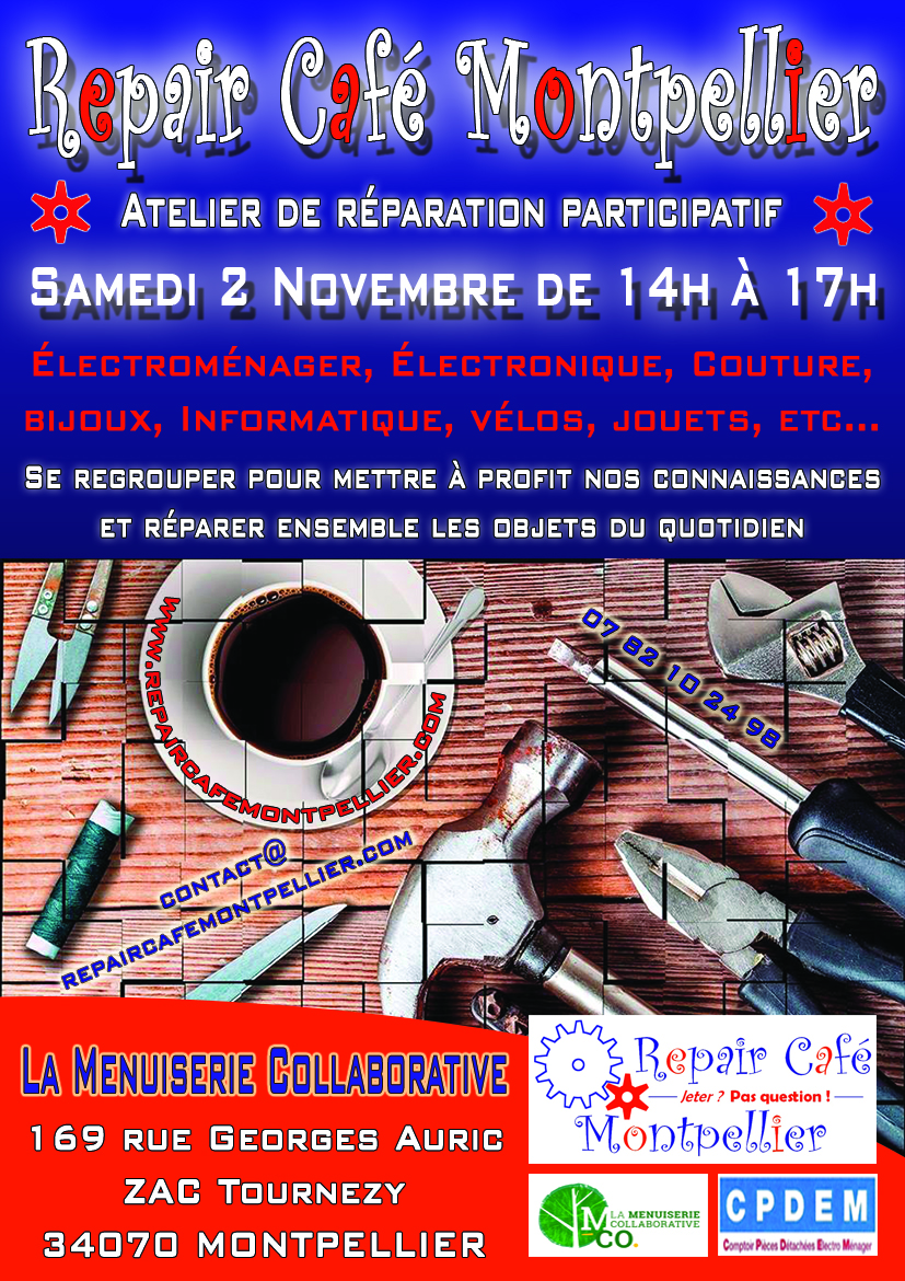 L’association Repair Café Montpellier organise son 4ème atelier de réparation participatif en partenariat avec La Menuiserie Collaborative de Montpellier !