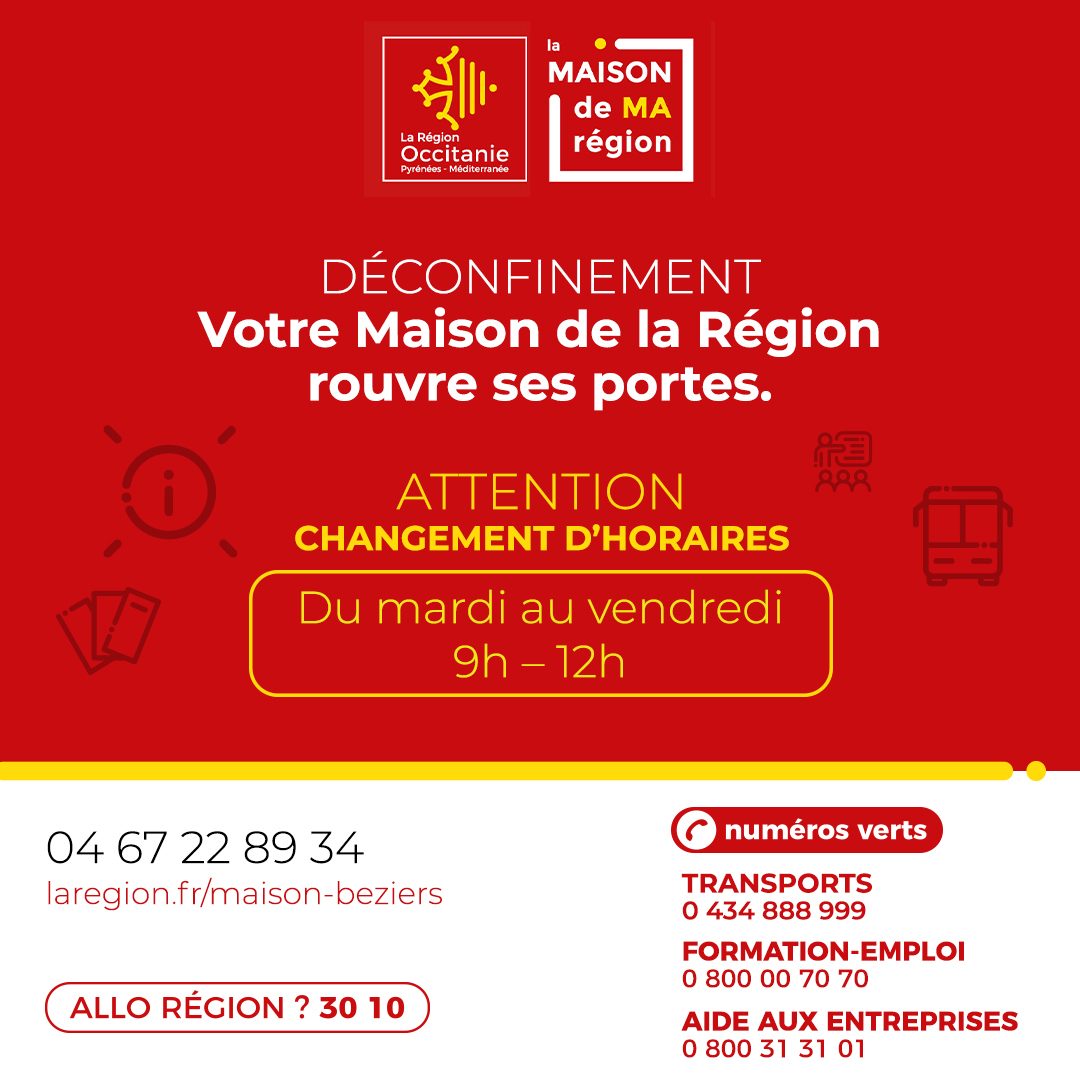 Votre Maison de ma Région à Béziers rouvre ses portes.
