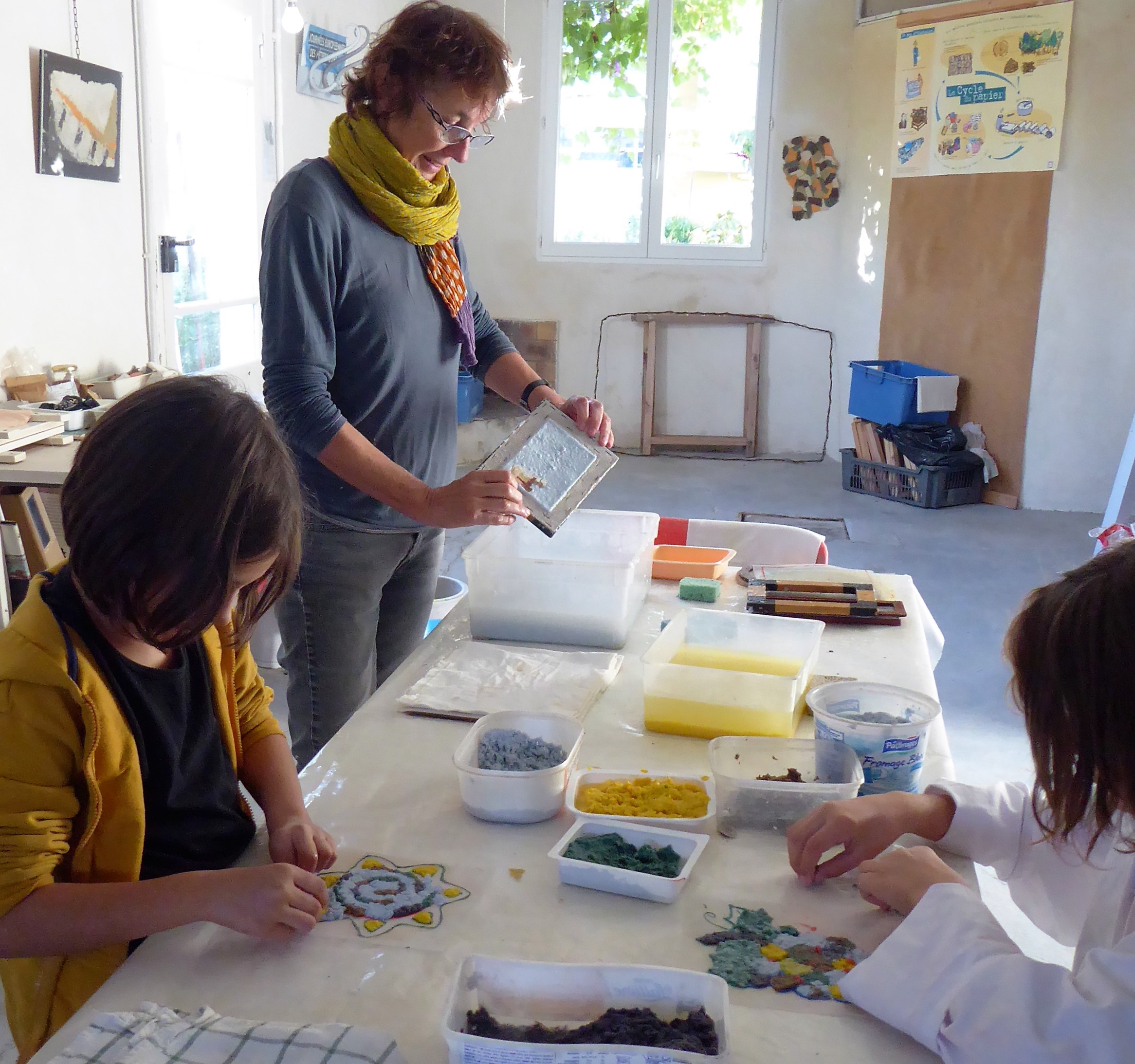 L’atelier Papier & Co est avant tout mon espace de travail où j’expose régulière mes recherches (visite sur RDV) mais aussi un lieu qui propose à l’année des initiations à la fabrication du papier, au moulage et à l ’accompagnement individualisé sur projet.