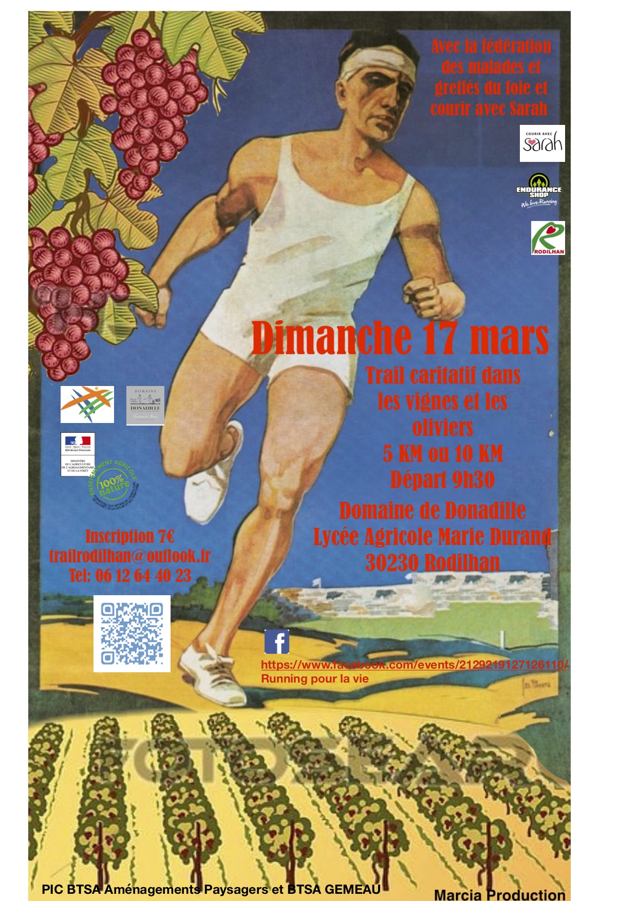 Trail caritatif dans les vignes et les oliviers du Domaine de Donadille, Lycée Agricole Marie Durand, Nîmes-Rodilhan.
