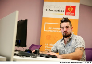Pour renforcer l’égalité d’accès à l’e-formation, la Région a créé un réseau de 34 espaces de formations à distance, sur l’ensemble du territoire. Bâtiment, numérique, industrie, environnement… Les stagiaires ont accès à un catalogue de formations professionnelles variées, et qui offre de réelles opportunités d’emploi. En pratique, les apprenants suivent les cours en grande majorité de leur domicile avec des séances de tutorat et d’autoformation, et ils se rendent également sur le site Occitanie e-formation le plus proche de chez eux (a minima une fois par semaine). Le centre de formation accueille de son côté les stagiaires lors de séances de regroupement. Florian Danty reconnaît qu’il n’aurait pas pu suivre sa formation si elle n’avait pas été proposée à distance : "Je travaillais à la fois chez moi et sur un site d’e-formation de la Région à Vic-en-Bigorre (65). C’était très pratique pour moi car j’habite à Tarbes. Sans cette possibilité, je n’aurais pas pu suivre la formation qui avait lieu à Toulouse."