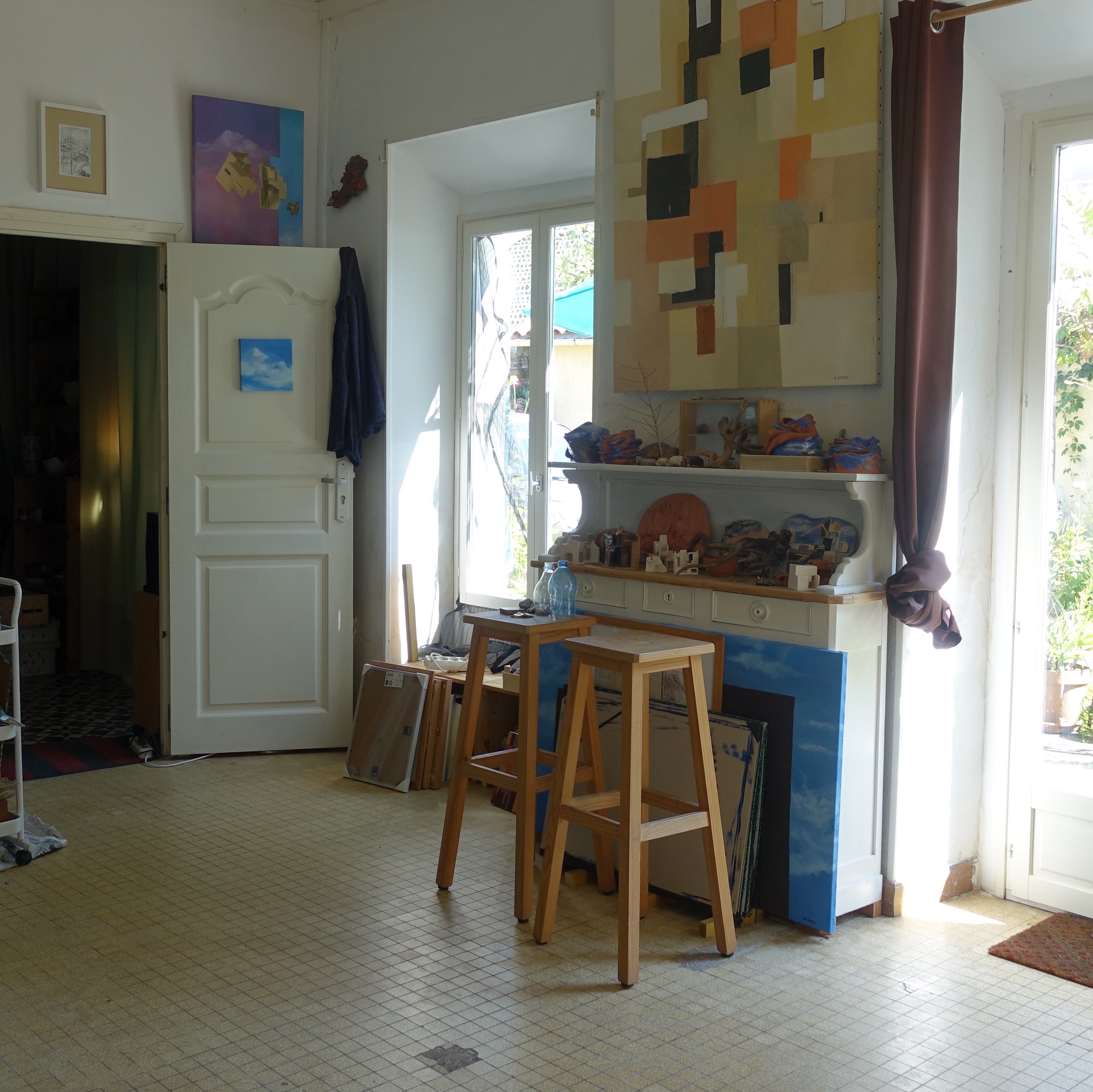 L’atelier, accessible depuis l’entrée extérieure, est logé dans le domicile de l’artiste.