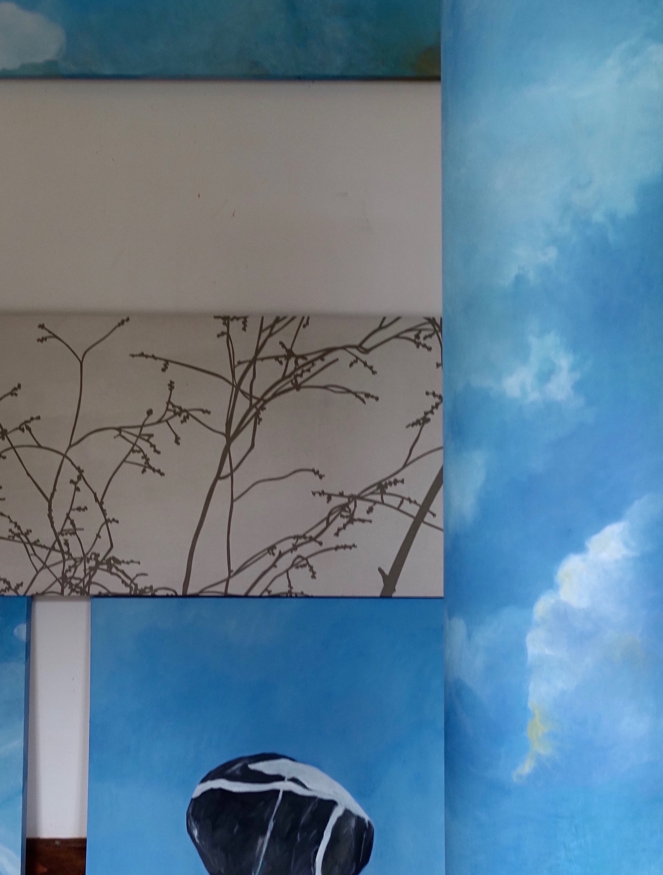 La pratique de la peinture continue de m’accompagner toujours mais depuis 2005 j’ai fait une place particulière à la technique de l’huile dont j’attends qu’elle m’impose son rapport au temps avec lequel il faudra composer. Cette temporalité qui me discipline sera alors propice à glisser un peu du tressaillement du monde dans la matière picturale en me saisissant çà et là des restes à accommoder. Si mes peintures s’apparentent à des espaces de construction solide, elles ne retiennent plus l’illusionnisme d’un espace en profondeur. Plans, coupures, coupures-plans, travaillent à composer l’espace du tableau qu’ils partageront avec la couleur ou son effacement.