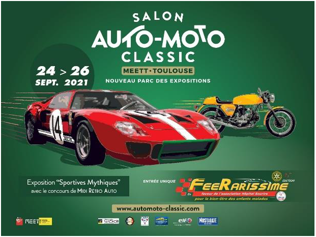 Pour sa 4ème édition, le Salon Auto-Moto Classic de Toulouse se déroulera du 24 au 26 septembre 2021 au MEETT, nouveau Parc des Expositions, écrin idéal pour sublimer ces véhicules d’exception. Fort de son succès, cet événement est devenu le rendez-vous incontournable des amateurs et passionnés de deux et quatre roues. Le millésime 2021 proposera aux visiteurs un plateau exceptionnel avec notamment l’exposition "Sportives Mythiques" et le retour de FeeRarissime qui célèbrera sa 15ème édition.