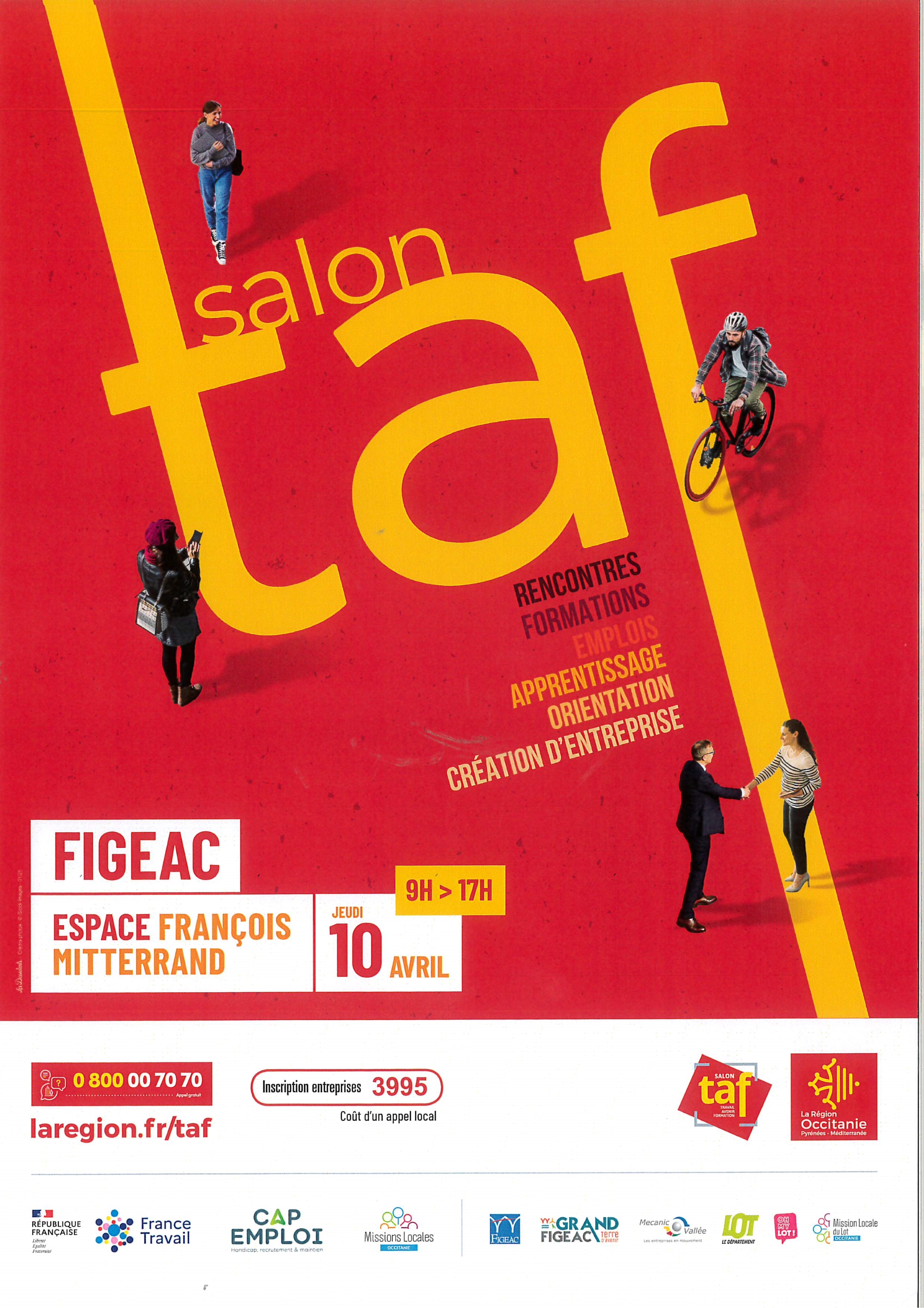 En 2025, le salon TAF Figeac aura lieu le jeudi 10 avril à l’espace F. Mitterrand, 1 place Philibert Renaud, Figeac de 9 heures à 17 heures.