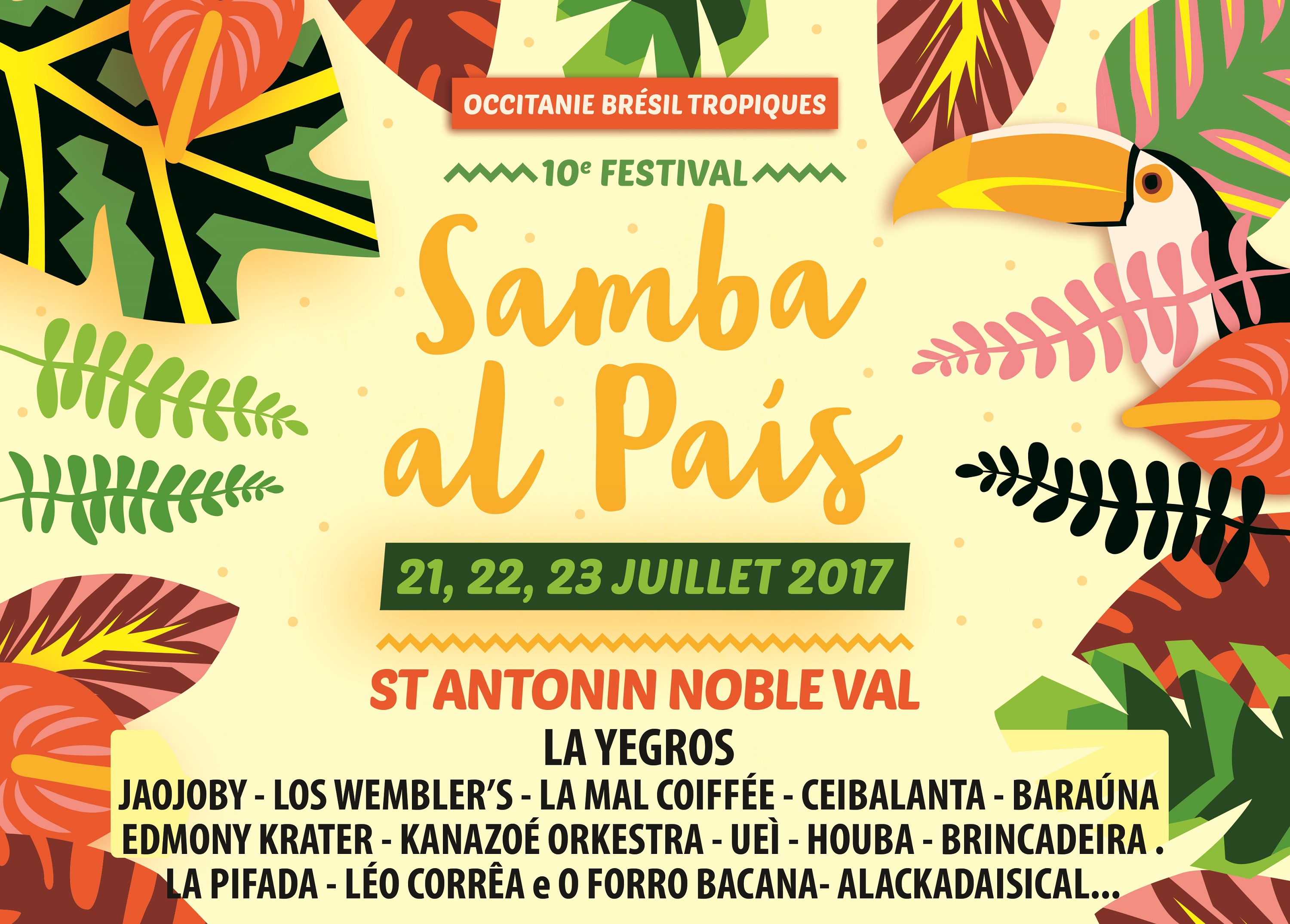 Pour sa 10ème édition, Samba Al País change de ville de Montricoux à Saint Antonin Noble Val pour un festival encore plus convivial.