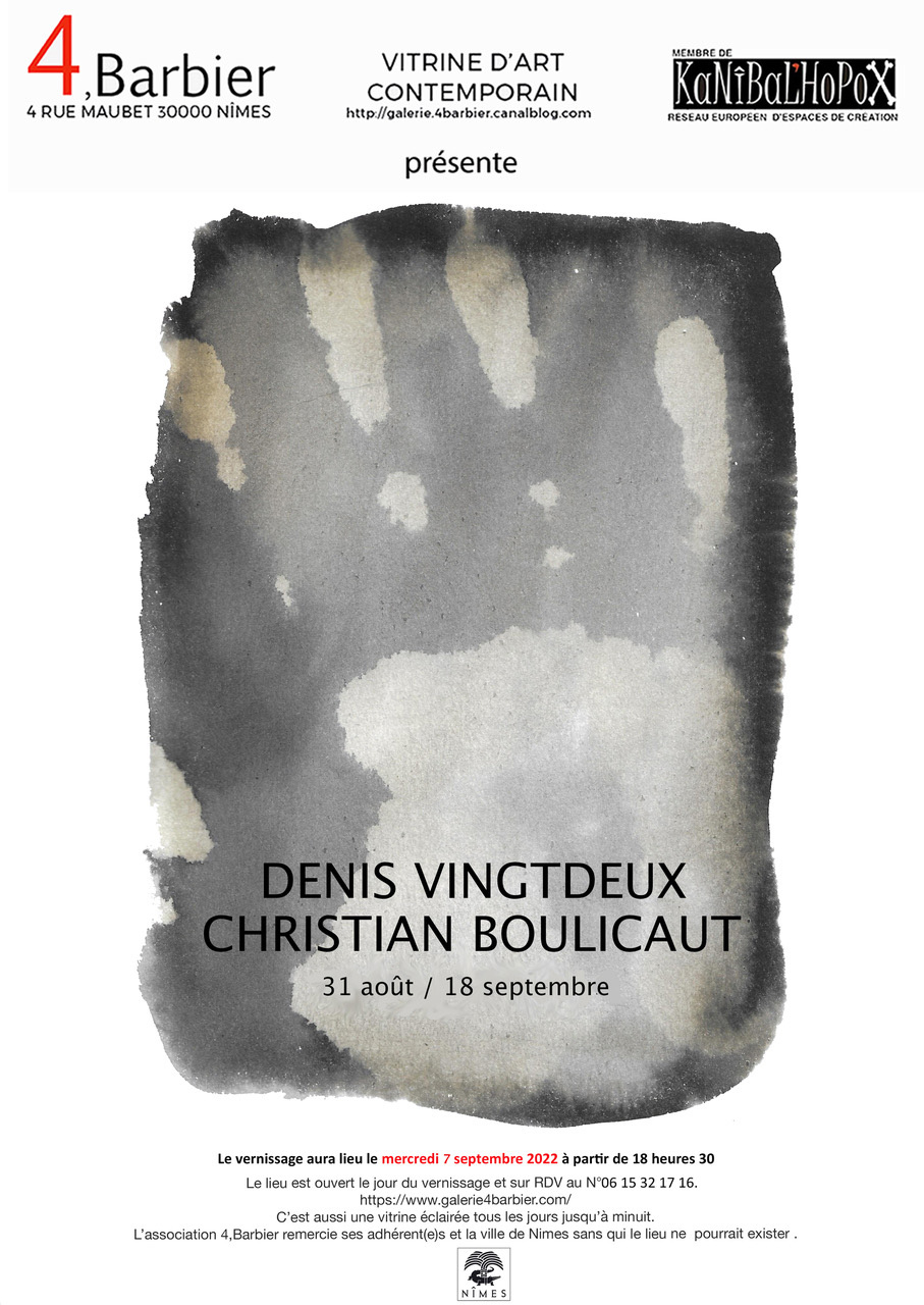 Deux artistes l’un peintre Christian BOULICAUT, l’autre sculpteur Denis VINGT DEUX partagent l’espace de la vitrine/galerie 4,BARBIER piur nous présenter leur travaux récents. A découvrir…