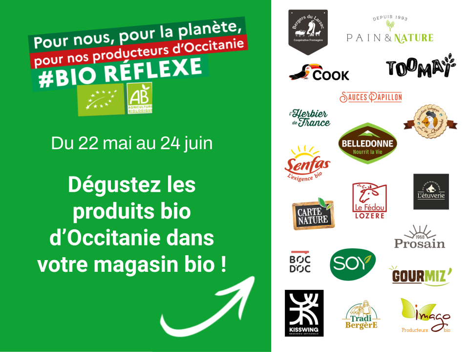 Tout au long de la semaine de la Bio du 8 au 15 juin 2024, venez déguster les produits des agriculteurs et entreprises bio d’Occitanie dans votre magasin bio.
