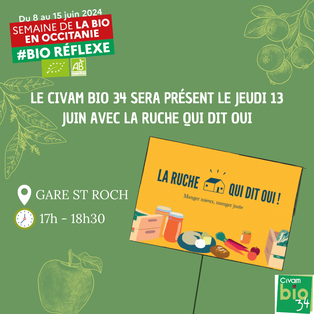 Le Civam bio 34 sera présent avec La Ruche Qui Dit Oui le jeudi 13 juin !