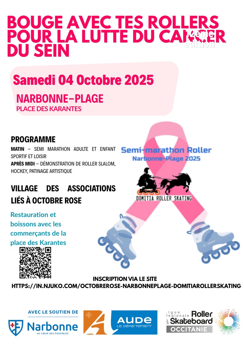 Domitia Roller Skating a choisi de s’associer aux manifestations d’Octobre Rose organisées par la Ville de Narbonne dans le but de contribuer à l’information et la promotion des actions de lutte contre le cancer du sein.