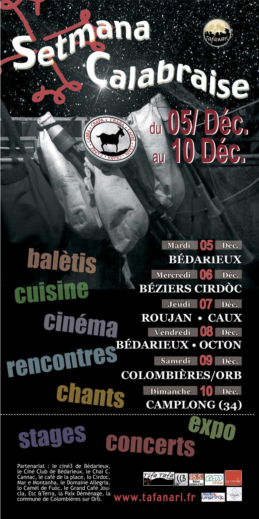 Une semaine en musiques, rencontres, gastronomie, danses, sous le soleil de l’Italie.. Plusieurs Rendez-vous, A Bédarieux, Octon, au Cirdoc à Béziers, à Camplong, à Roujan et Caux, et le grand Bal à Colombières/orb…