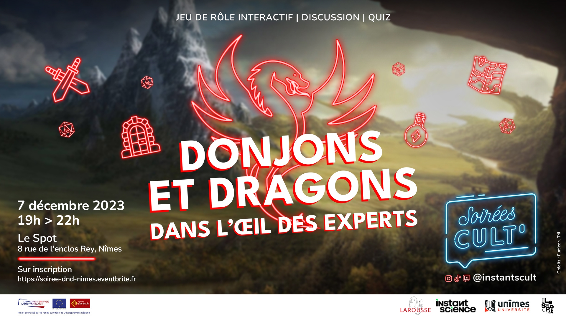 Entrez dans le monde de Donjons et Dragons et déjouez un mystérieux brouillard qui sème la panique ! Pour éviter les pièges et réussir à gérer une crise majeure vous pourrez compter sur des spécialistes en chimie et psychologie. Jeudi 7 décembre à 19h, Le Spot de Nîmes accueillera une soirée inédite sous forme de jeu de rôle sur table, accessible à tous niveaux, en compagnie de chercheurs de l’Université de Nîmes.