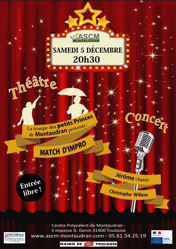 Découvrez le talent des comédiens de "la troupe des Petit Princes" de l’ASCM ! Même s’ils sont encore très jeunes, ils ont accepté le défi de monter sur scène sans avoir appris un seul mot. L’improvisation sera la note de couleur de cette représentation !
