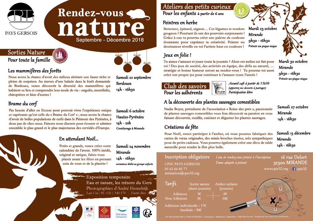 Inscription obligatoire : 05 62 66 85 77 / animation@cpie32.org