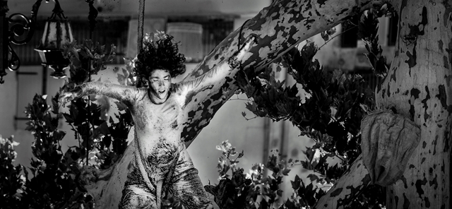 Un mouvement poétique enveloppé d’un espace sonore, sous un arbre Comme dans une quête d’identité et de questionnement sur ses racines, cette jeune femme joue d’une corde comme de son lien à sa terre patrie.