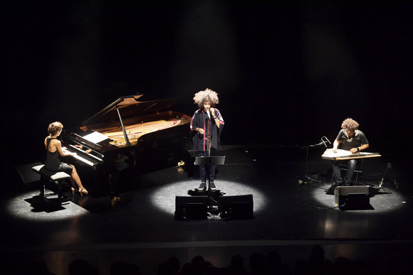 Création Arabesques, Le Lanceur de dés met en musique et en voix le poème éponyme du palestinien Mahmoud Darwich. Les vers du poète résonnent en arabe, la langue originale au travers de la voix et de l’interprétation habitée de l’artiste franco-marocain Walid Ben Selim, également membre du groupe N3rdistan. La contrebasse de Benoît Levesque et le piano d’Agathe Di Piro dialoguent et soulignent les jeux du destin décrits dans le poème. Le trio se laisse guider par les mots de Darwich, les instruments vibrent et s’emportent comme charmés par l’incantation poétique et la musicalité de la langue.