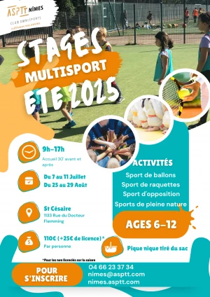 Lors des vacances d’été 2025 nous proposons deux stages multisports pour les enfants de 6 à 12 ans.