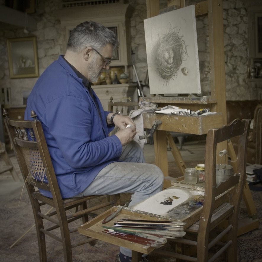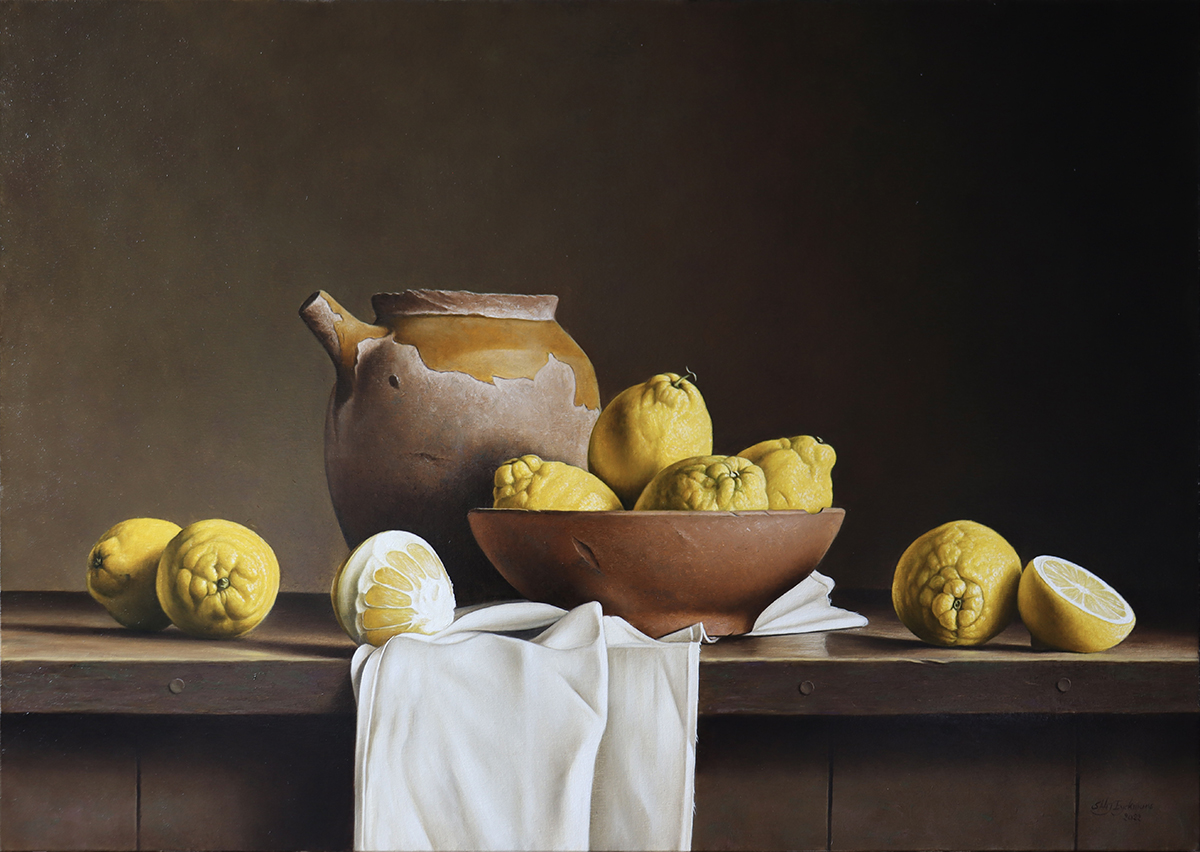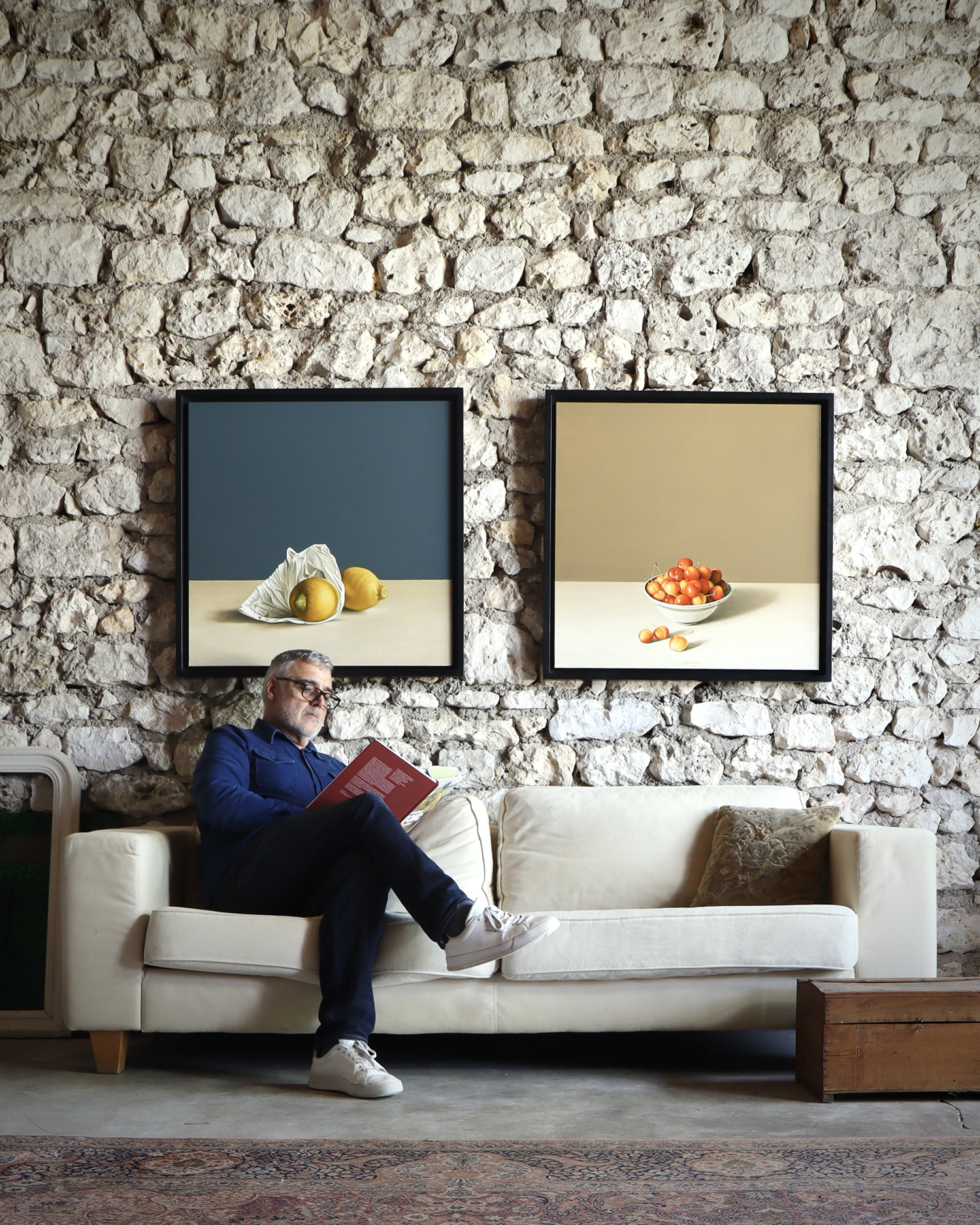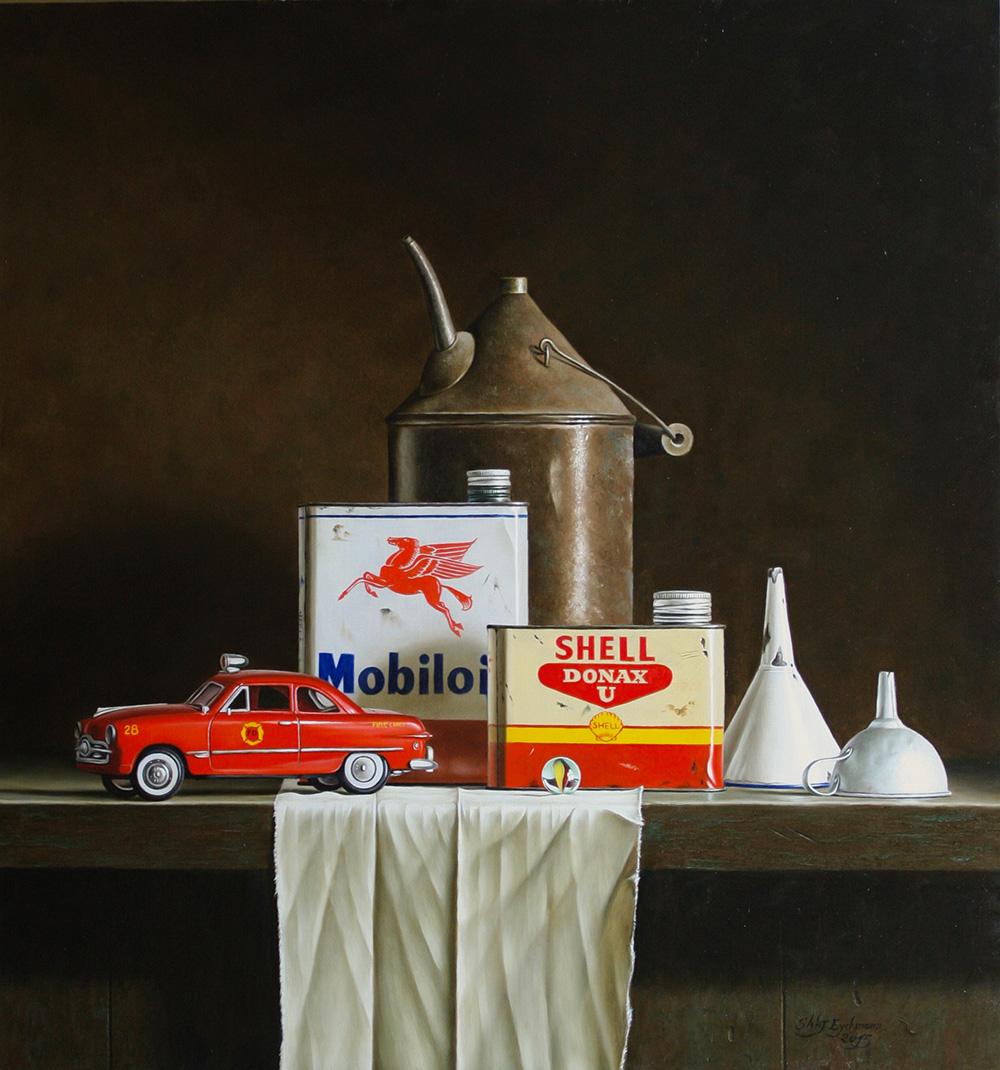 La technique des coloris des maîtres anciens combinée avec les matériaux, les couleurs et les objets actuels, fait naître un réalisme contemporain qui s’enracine dans une tradition picturale séculaire.