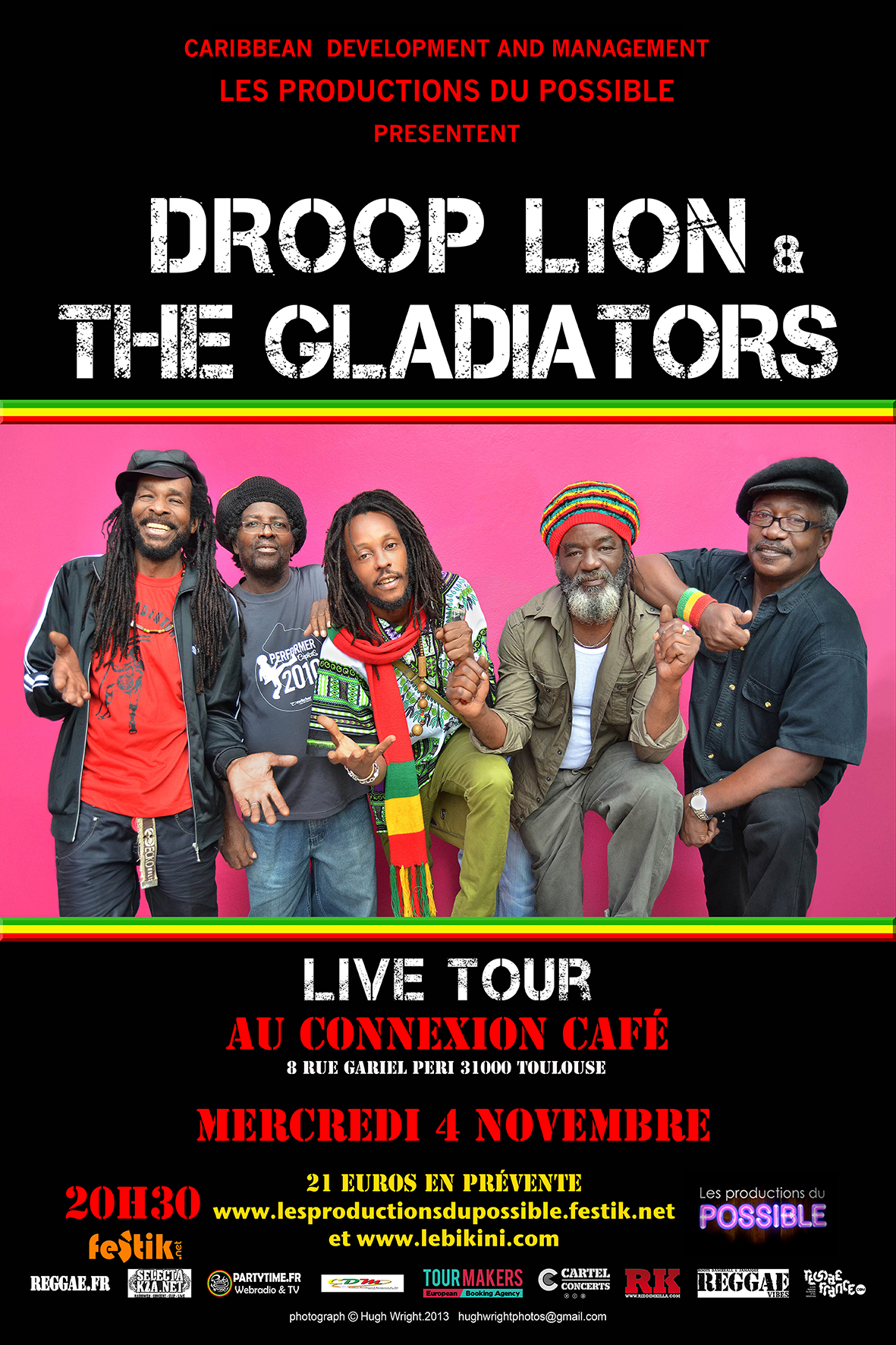 Formé dans les années 60, le trio THE GLADIATORS fait partie des légendes du roots reggae avec plus d’une quarantaine d’albums à son actif. Depuis les adieux à la scène du leader Albert Griffiths, en 2004, la voix soul et puissante de DROOP LION sublime les classiques et les nouveaux morceaux newroots du groupe