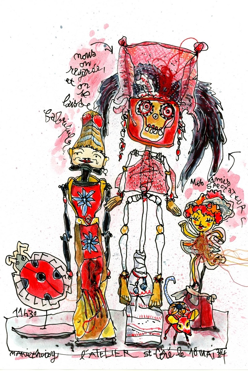 Je vis dans mon atelier. Chaque pièce est occupée en grande partie par des stockages de matériel pour mes ateliers d’art plastique ou de carnet de voyage.