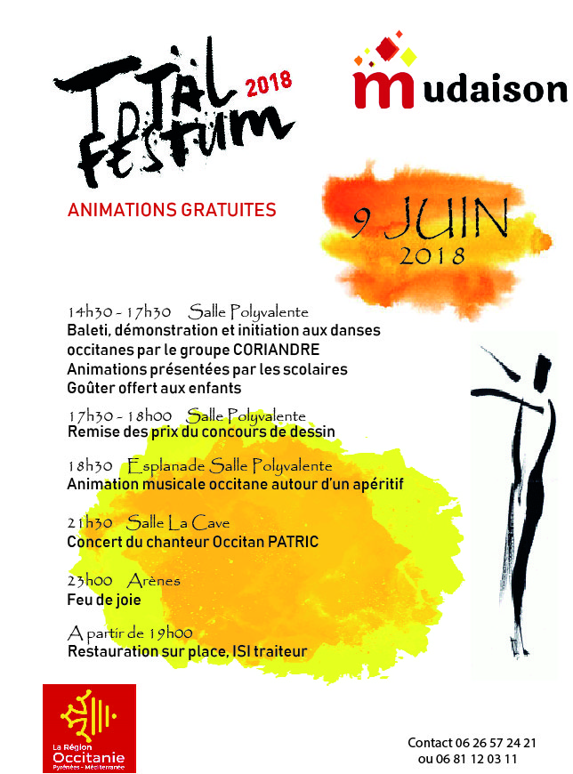 Baleti (ateliers),concours de dessins avec pour thème : la représentation de la culture Occitane, concert (Patric), Feu de joie.