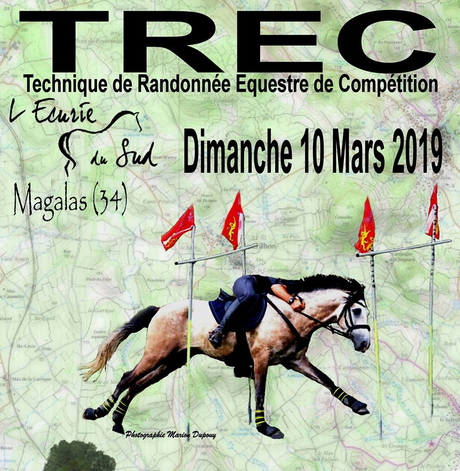 L’Ecurie du Sud organise son 3ème TREC à Magalas (34) les samedi 9 et dimanche 10 mars 2019 !!