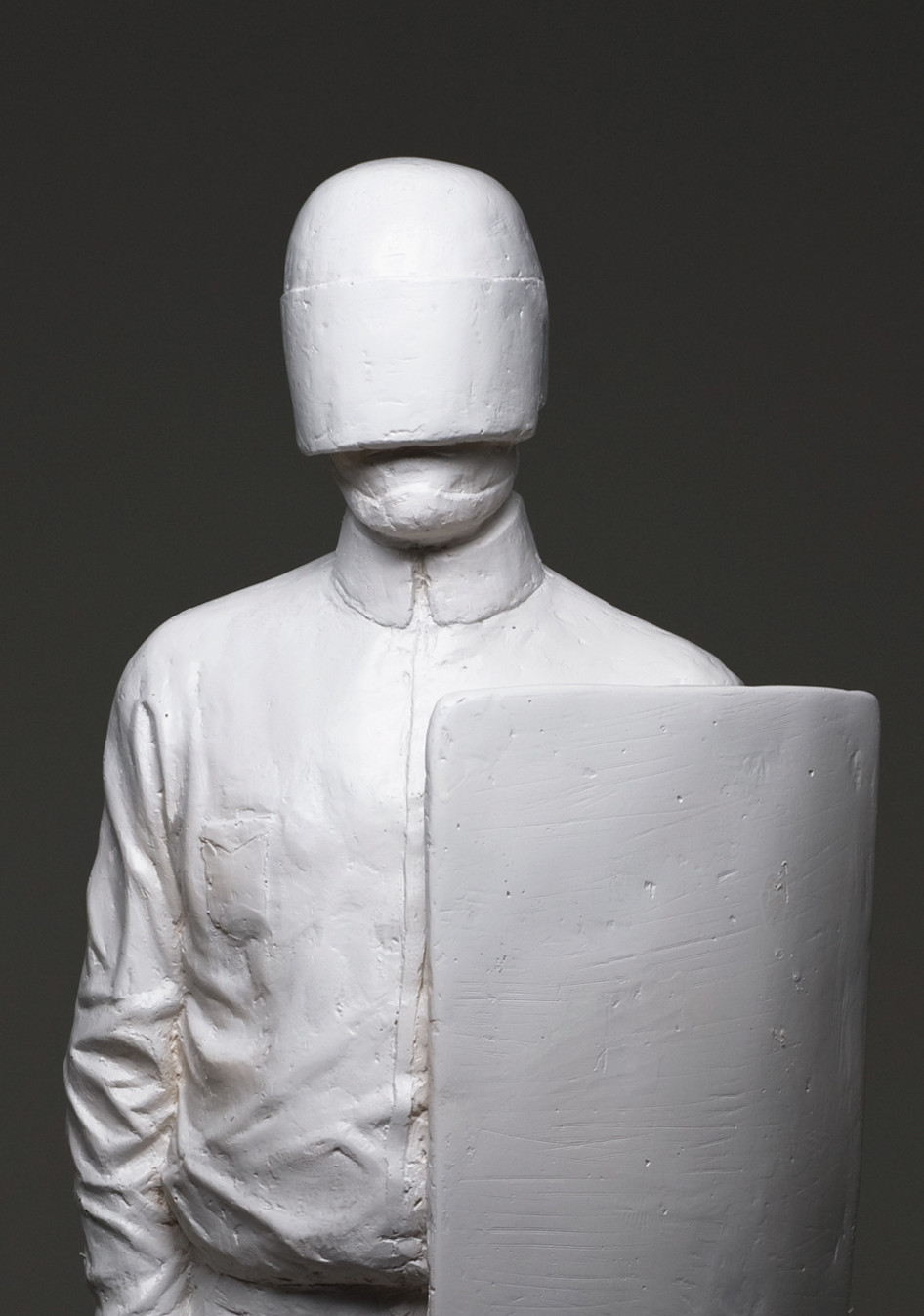 En remontant l’histoire de l’art à travers les représentations bibliques, en regardant longuement encore Michel-Ange, (…) Tarik Essalhi a compris que la figuration du corps lui permettrait de dire beaucoup de l’histoire contemporaine, tout en logeant l’irracontable au cœur de la masse de ses sculptures. (…) Le but n’est pas d’atteindre à un hyperréalisme, mais bien plutôt de retrouver dans l’usage de cette matière paradoxale, qui construit les murs de nos enfermements, l’idée de la morbidezza formulée par les Italiens. Avec toute la richesse de l’ambiguïté du terme et de sa traduction : la morbidesse en art, c’est la mollesse et la délicatesse de la figure, la souplesse du modelé de l’anatomie. (…) Les sculptures ne sont pas à l’échelle humaine - ce serait en quelque sorte nier le langage plastique, qui n’est pas la réalité. »