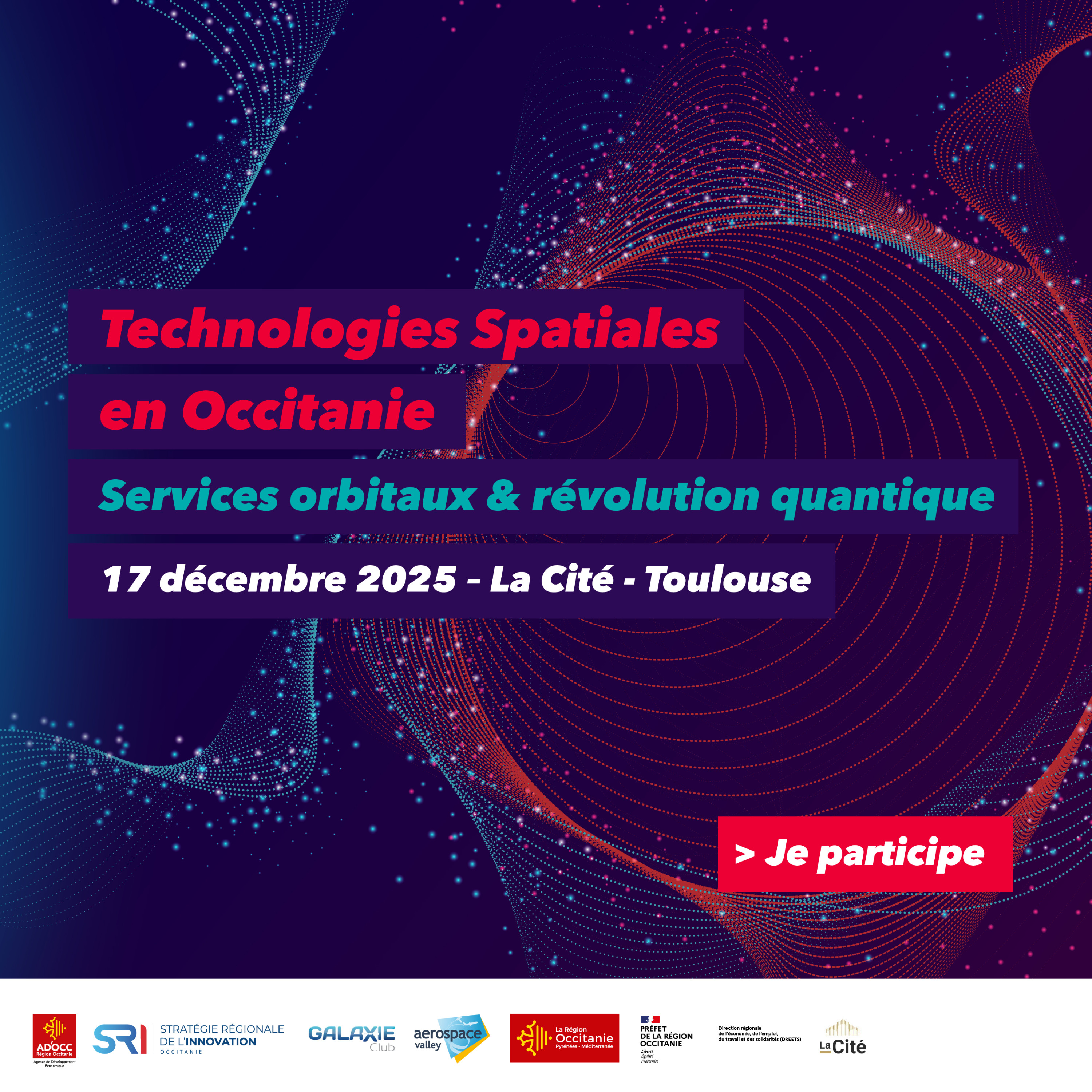 L’industrie spatiale doit se réinventer face aux nouveaux défis technologiques portés par l’émergence des services orbitaux et les perspectives qu’offrent les technologies quantiques. L’agence AD’OCC, le Club Galaxie, Aerospace Valley et leurs partenaires vous invitent à découvrir les dernières innovations, les acteurs clés de la région et les axes technologiques qui façonneront le spatial de demain.