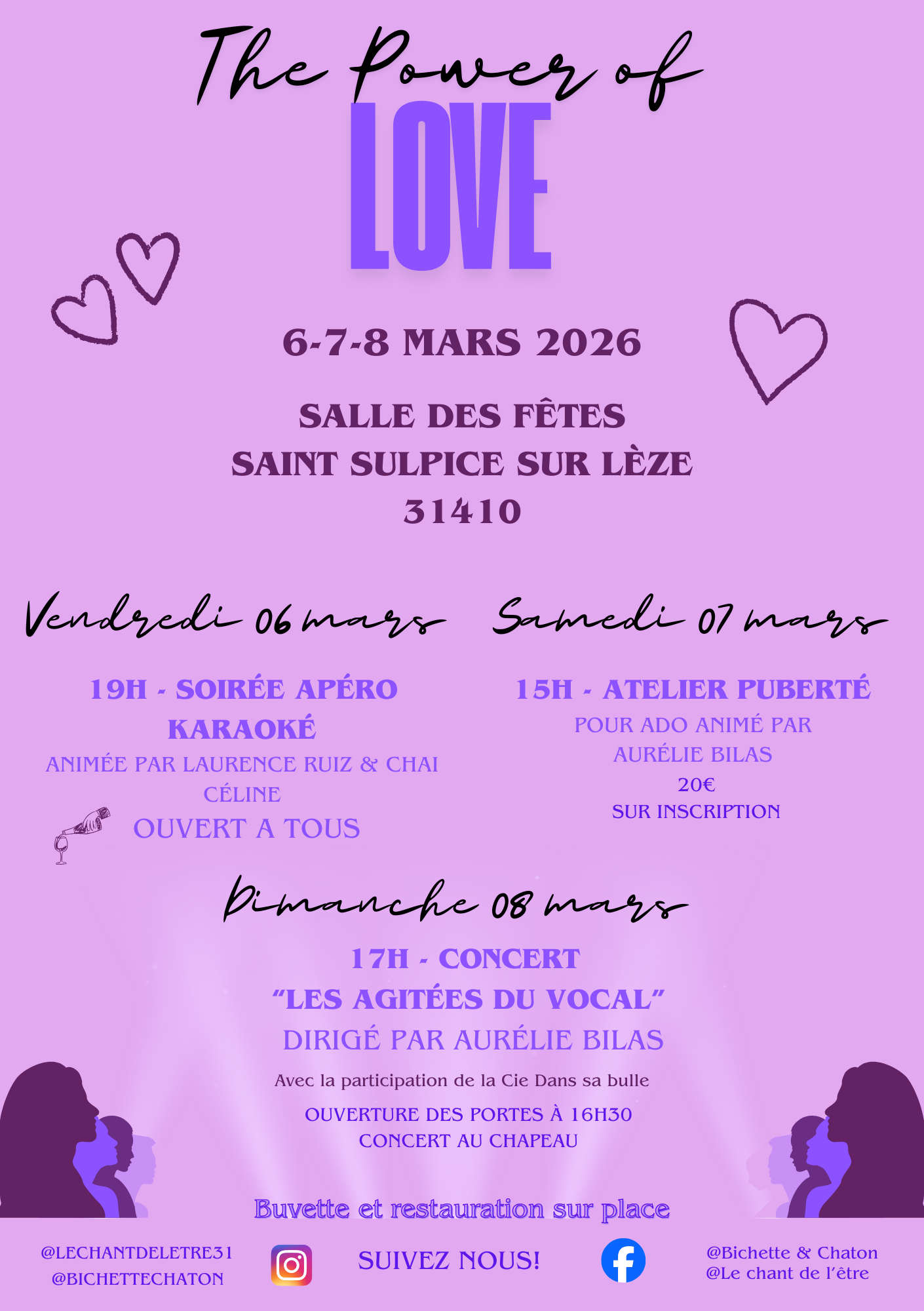 Nous sommes heureuses et fières de vous dévoiler notre programme pour l’évènement "The Power Of Love" les 6-7 & 8 mars à l’occasion de la Journée Internationale des Droits des Femmes 🫶