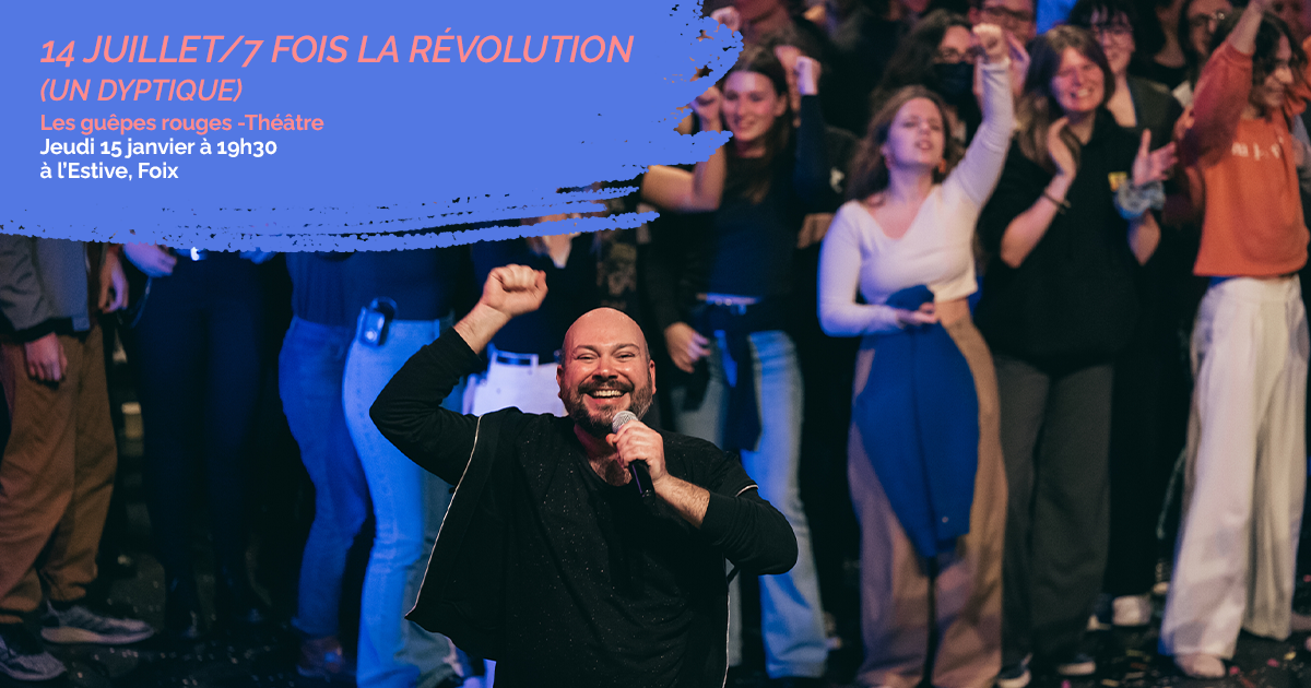 Au fil de deux spectacles à suivre, la compagnie Les guêpes rouges – Théâtre plonge dans les rouages de la Révolution de 1789 et prépare une fête populaire pour nourrir nos appétits révolutionnaires ! Au cours de cette grande performance collective, elles catalysent toutes les énergies pour bâtir un élan commun !