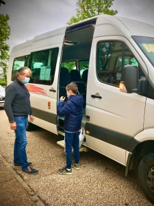 - Désinfection de tous les cars avant le redémarrage du service et nettoyage des points de contact entre chaque course,